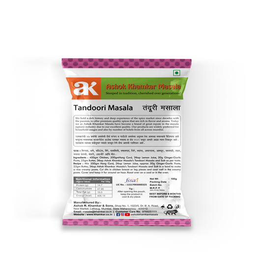 प्रत्येक खरेदीसह, तुम्ही आमच्या मसाल्याच्या कुटुंबाचा एक भाग बनता - अशोक खामकर मसाल्याच्या टेपेस्ट्रीचा अविभाज्य धागा. एकत्र, मसाल्यांची जादू आणि अविस्मरणीय पाककृती अनुभव तयार करण्याचा आनंद साजरा करणार्या प्रवासाला सुरुवात करूया.