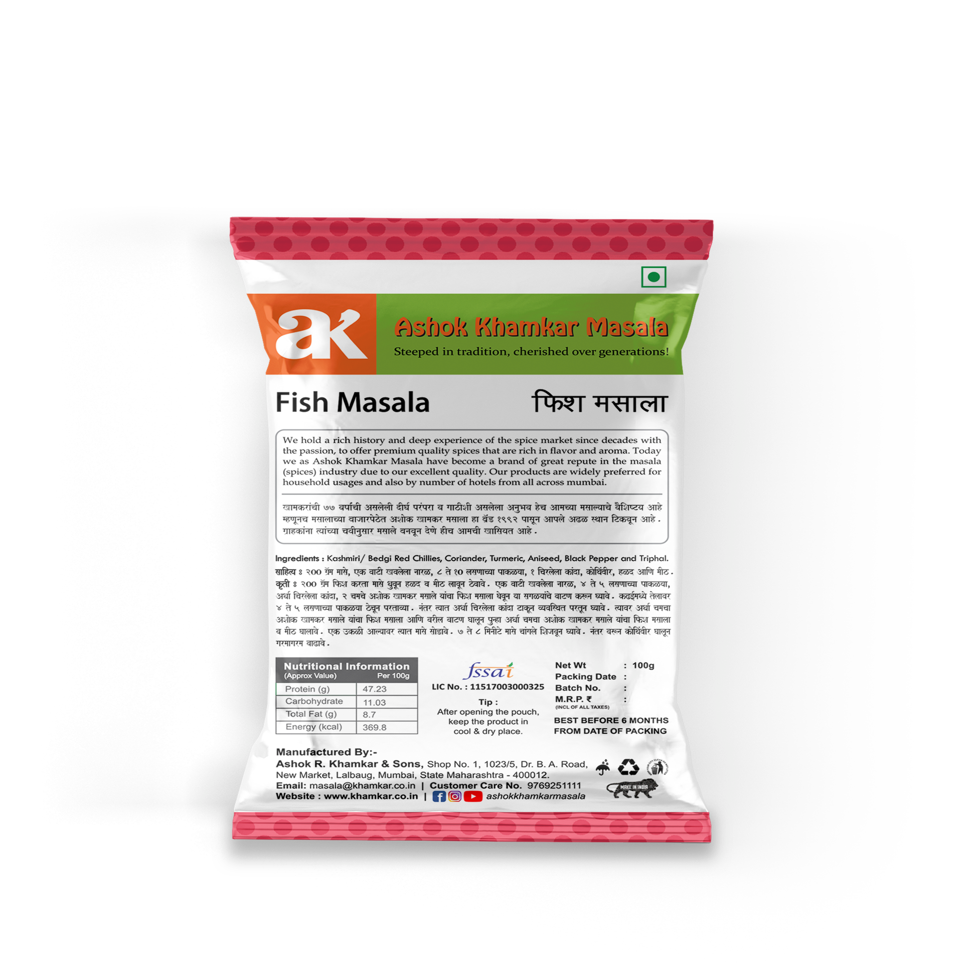 Indulge in the irresistible allure of our Fish Masala, meticulously crafted to enhance the natural taste of fish and elevate your culinary experience. Carefully blended with a harmonious medley of handpicked spices.