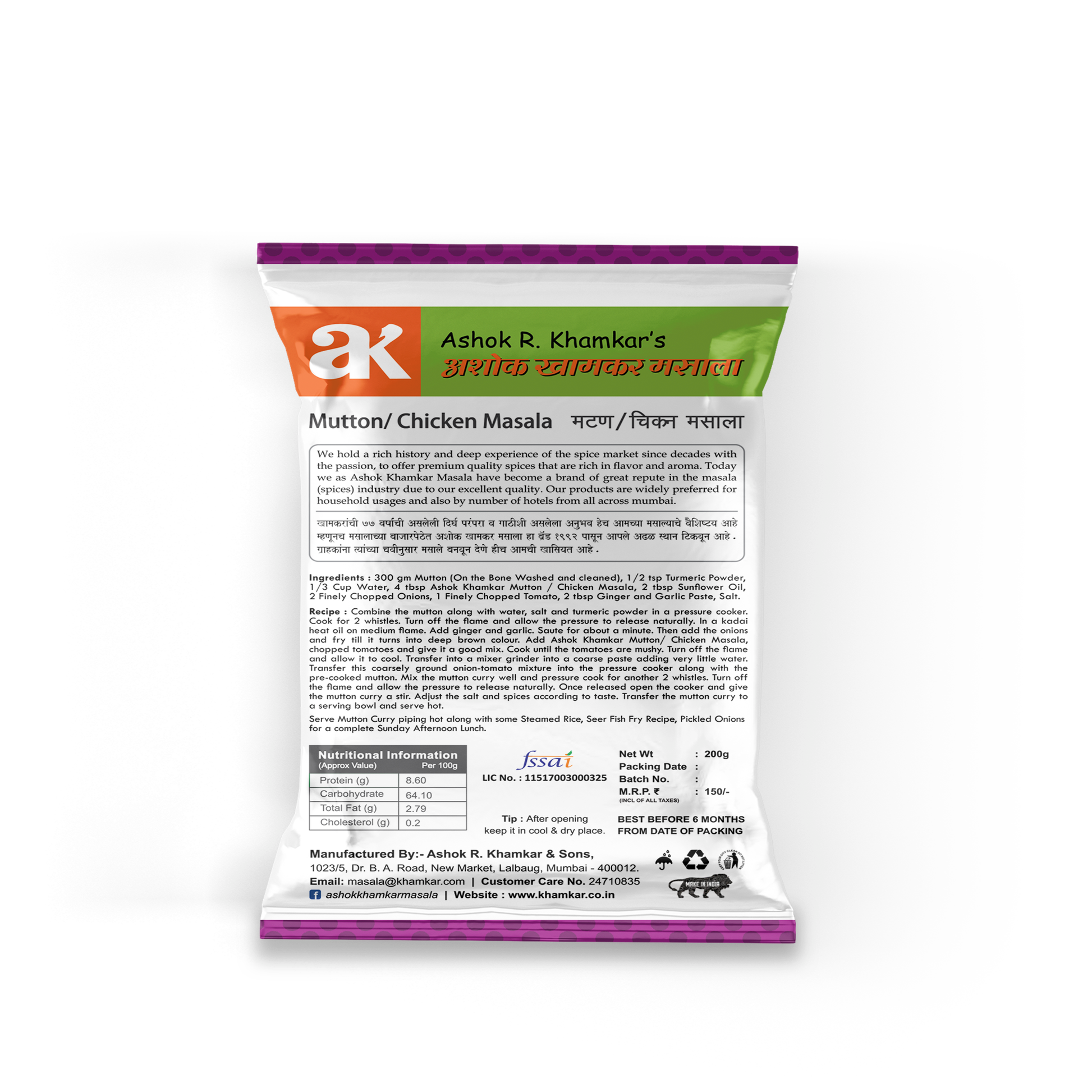 A selected handpicked blend from Ashok Khamkar Masala, roasted and grounded to enhance flavour making your dish one of the best . This is a very old recipe of our grandmother which we have carried forward with utmost precise weight management and her style.so is the reason we have no second quality of malavani masala because we believe in her recipe . Try it once to believe it specialy used by lot of In India and Abroad