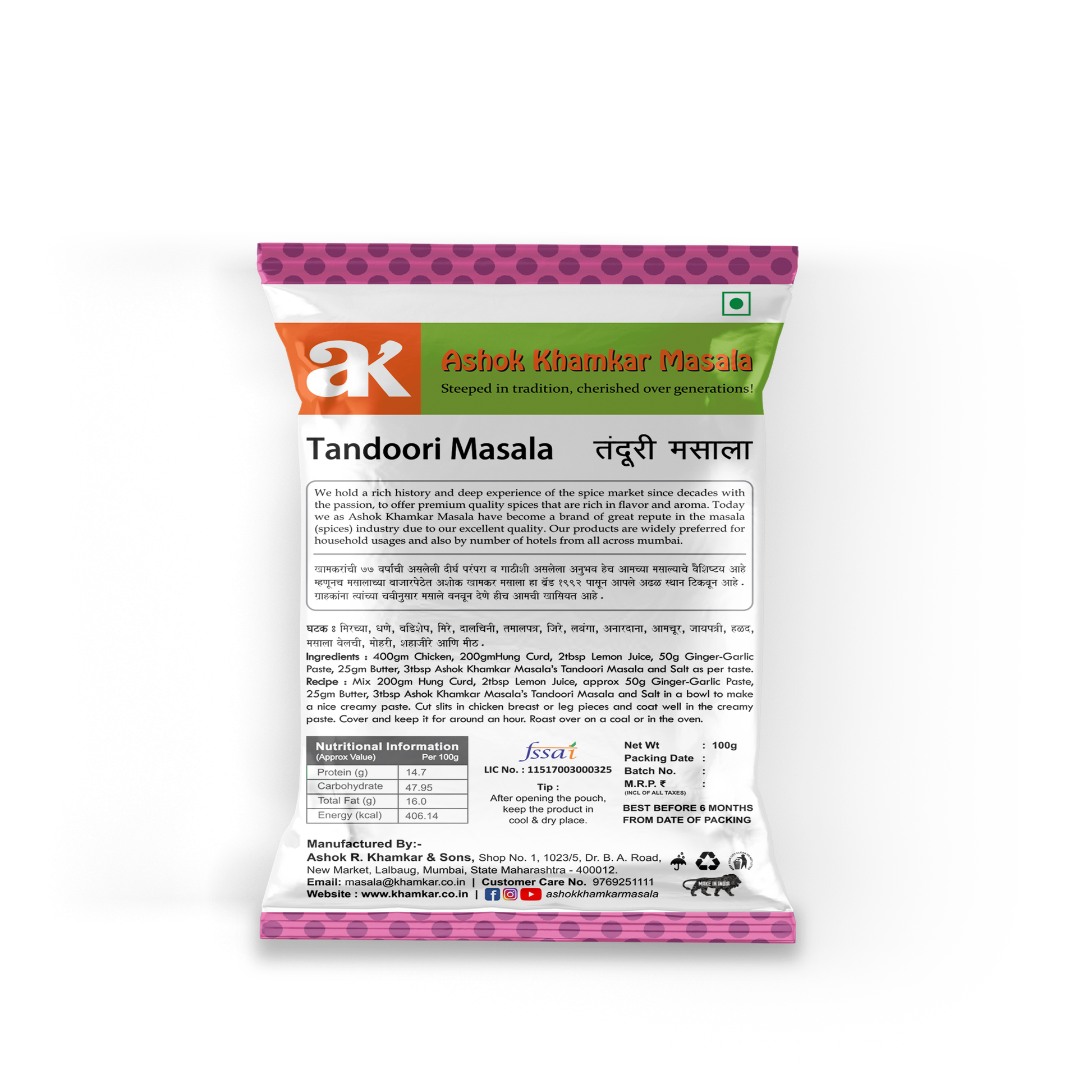 Revel in the tantalizing aromas and flavors of Tandoori cuisine with our authentic Tandoori Masala. A delightful blend of roasted spices, carefully crafted to perfection, our Tandoori Masala captures the essence of India's vibrant street food culture. From delectable tandoori chicken to exotic kebabs, this spice blend adds a burst of taste and color to your dishes, making your meals a delightful treat for the senses. Experience the authentic taste of tradition with every bite, as our Tandoori Masala takes you on a journey of culinary delights!